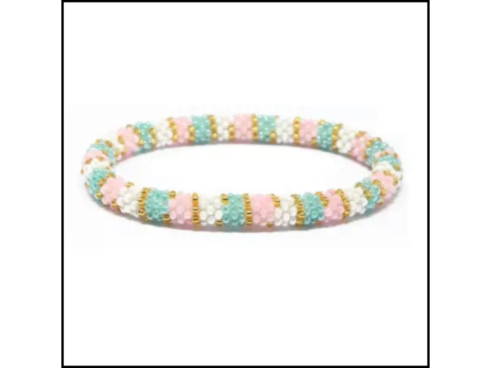 Each bracelet is handmade in Nepal by artisan women. Over two hours of meticulous crocheting goes into making a single seed bead bracelet. Bracelets are made using a durable cotton thread and Czech glass beads.