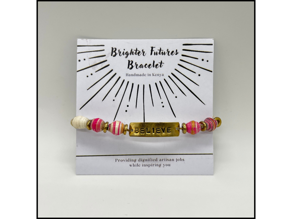 Inspiration for brighter futures is within reach with our new paper bead Brighter Futures Bracelet. Each paper bead is rolled by hand and features a brass bar with hand-stamped lettering, this bracelet is the perfect reminder for anyone that the future is in your hands.