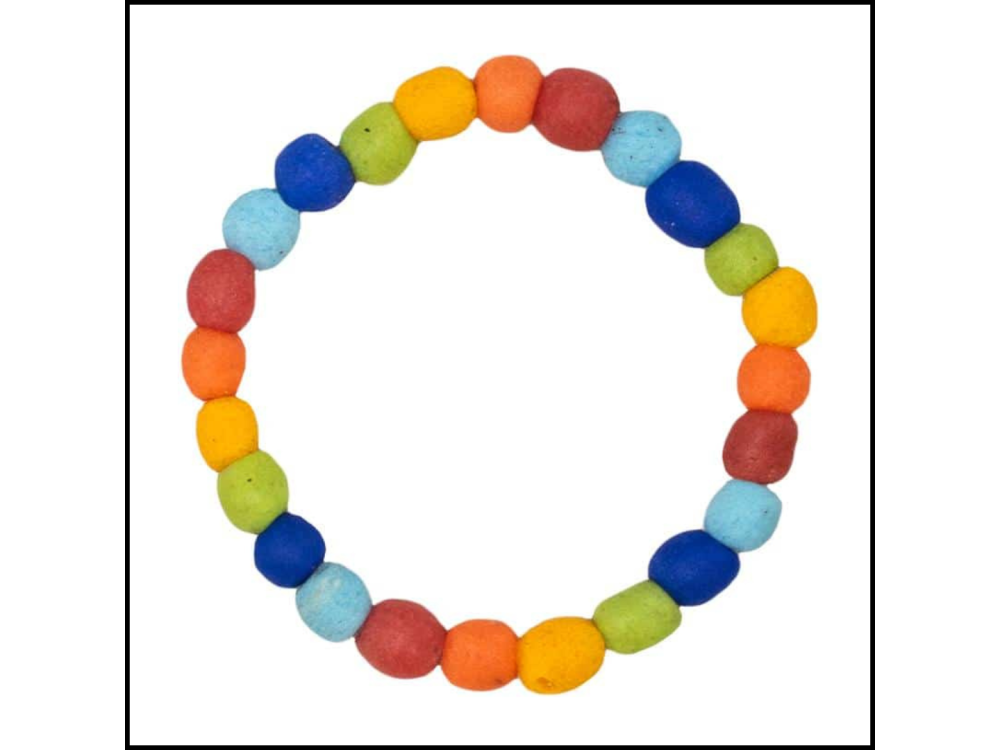 Bracelets are made from recycled glass & have clear elastic band. (~7.5")