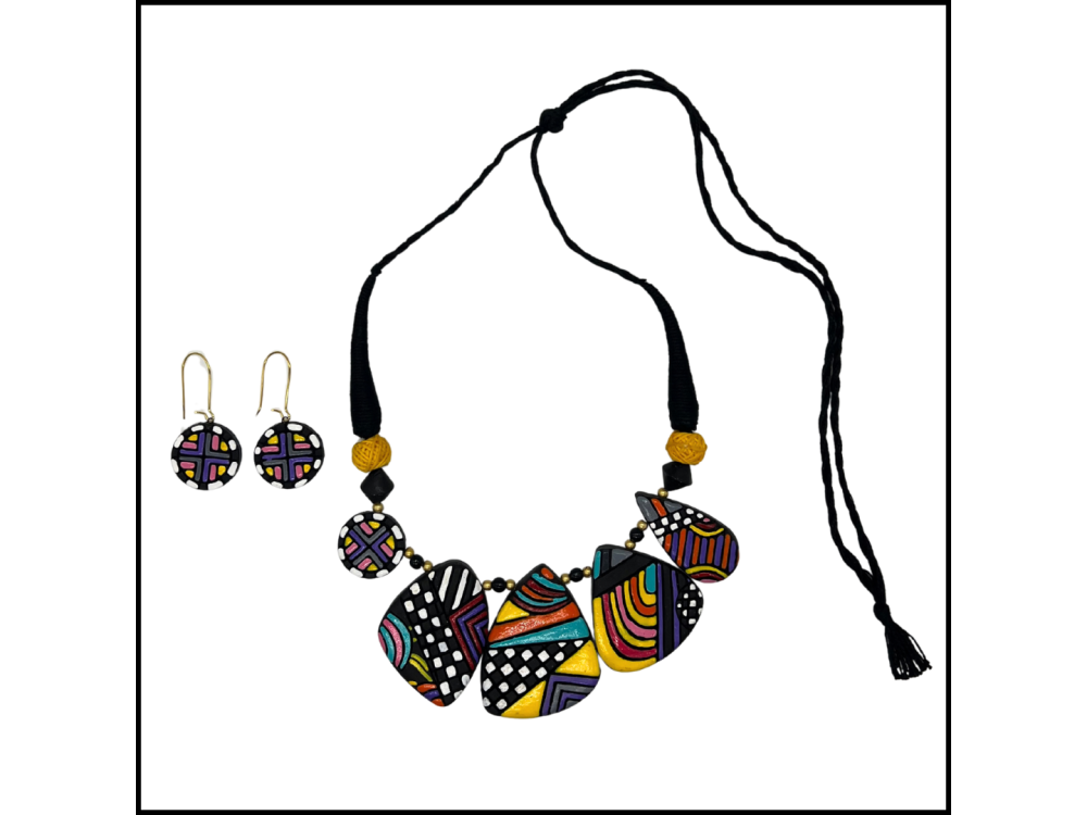 This beautiful handmade set that contains a necklace & matching pair of earrings. Every purchase empowers artisans and survivors with sustainable jobs in India
