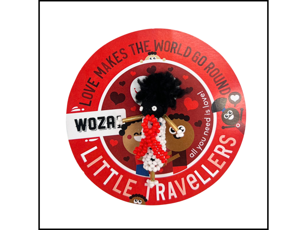 Handmade in South Africa, each beaded Little Traveler Pin comes with its own story card. Proceeds support food, shelter, water, education, and economic stability in South Africa.